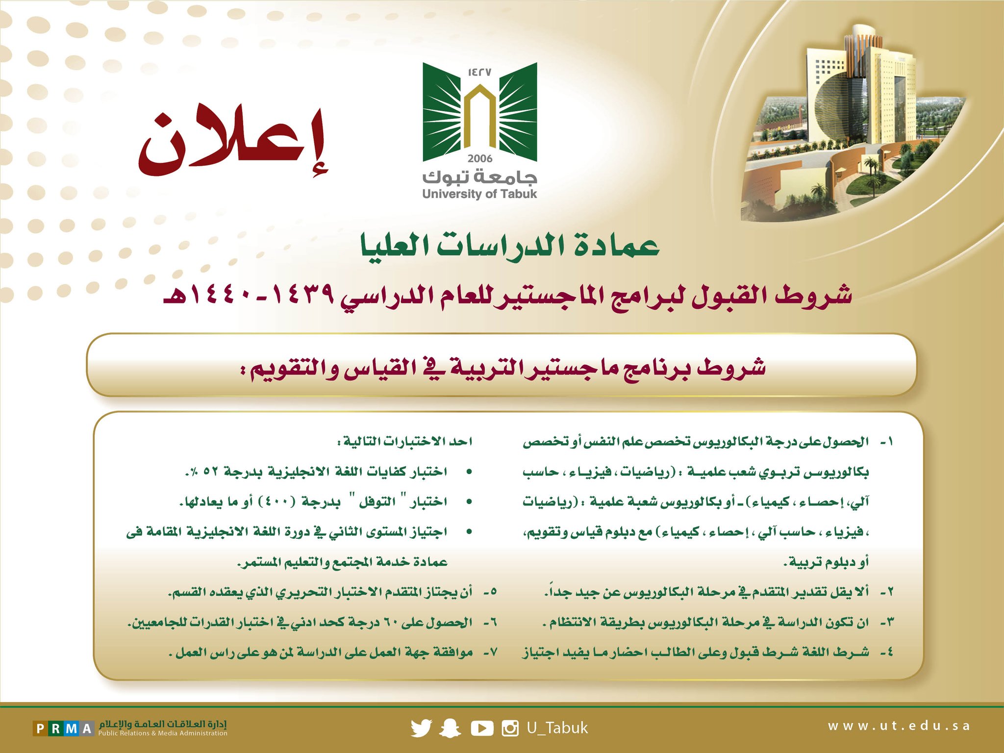أكد الأمير فهد بن سلطان بن عبدالعزيز أمير منطقة تبوك، أن جامعة تبوك وخلال 15 عامًا، تُواصل تخريج أبنائنا وبناتنا لسوق العمل، الذين يعملون لنهضة بلادهم